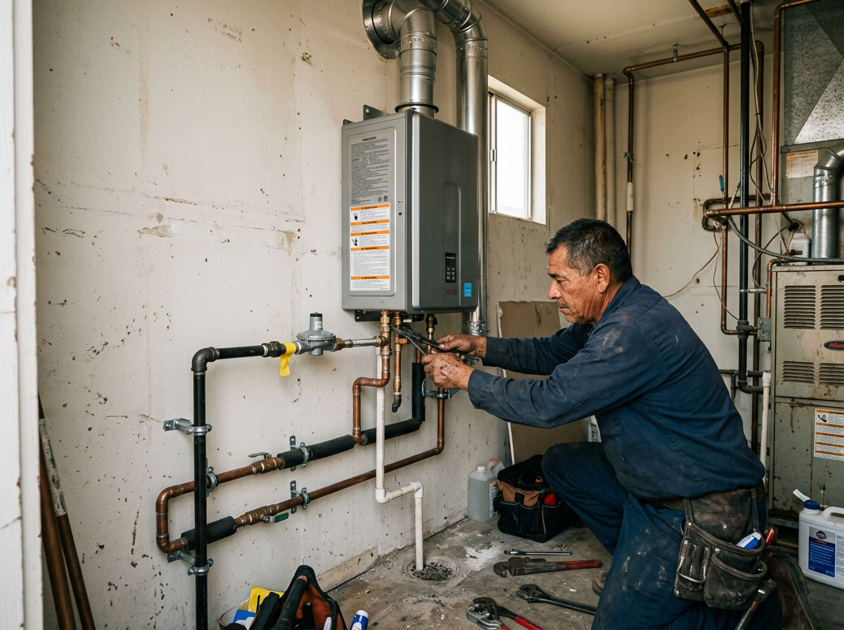 No hot water at 6am? Tank, tankless, gas, electric, hybrid. Same-day swap on most standard 40 & 50-gallon units. Carrying Rheem and Bradford White on the truck.
